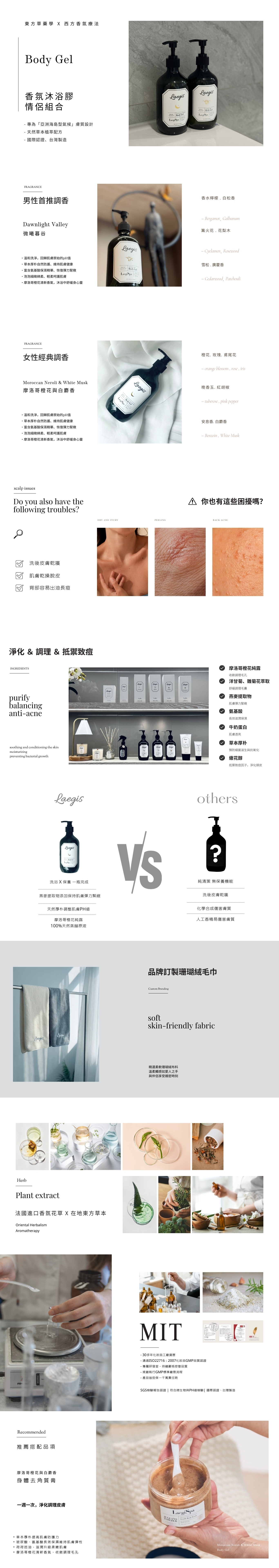 用大自然的禮物洗淨肌膚,一瓶完成洗浴和保養,洗後滋潤不乾澀,將肌膚維持在健康弱酸性pH值5.6,結合東方草本護膚概念與西方香氛療法的MIT自然系沐浴品,選擇這片土地的自然珍寶「草本厚朴」平衡健康膚質、取代化學防腐劑,並添加多種高級草本成分,溫和洗去一整天的髒污和疲憊,在洗淨同時療癒身心靈,是城市中的最佳的舒壓沐浴膠。