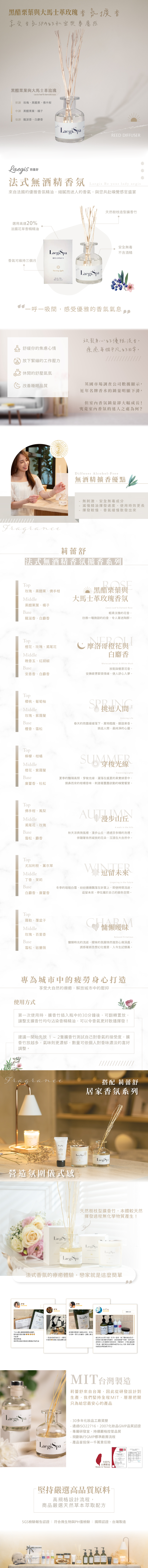 選用高達20%的法式香精精油,無酒精添加,成分單純、無毒,家中有毛孩也能安心用。讓你每天回到家,都能安穩的被整室的香氣擁抱,嘴角忍不住揚起幸福的笑。